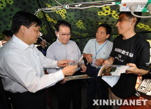 受胡錦濤總書記委托,中共中央政治局常委李長春6月1日和2日到四川地震災區(qū)察看災情,看望慰問奮戰(zhàn)在抗震救災第一線的新聞工作者。