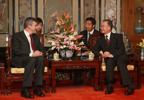 溫家寶說,在新形勢下中英共享發(fā)展機(jī)遇、攜手應(yīng)對挑戰(zhàn),符合兩國和兩國人民的根本利益,也有利于世界和平與發(fā)展。雙方應(yīng)從戰(zhàn)略高度和長遠(yuǎn)角度出發(fā),堅(jiān)持相互尊重和平等互利原則,切實(shí)維護(hù)兩國關(guān)系大局。中方愿與英方保持高層交往,加強(qiáng)戰(zhàn)略對話,妥善處理分歧,推動(dòng)各領(lǐng)域友好交流與互利合作取得更大進(jìn)展。