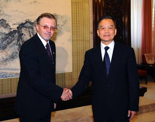 在會見拉脫維亞總理戈德馬尼斯時(shí),溫家寶表示,中方重視發(fā)展同拉脫維亞的友好關(guān)系,愿在現(xiàn)有良好基礎(chǔ)上,加強(qiáng)雙邊各級別磋商,發(fā)展互利、平衡的經(jīng)貿(mào)關(guān)系,推進(jìn)交通運(yùn)輸和相關(guān)領(lǐng)域的合作,促進(jìn)青年交流,更好地造福于兩國人民。