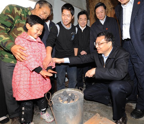 李克強(qiáng)臨時(shí)停車走進(jìn)漩口鎮(zhèn)油輾村村民汪娟住的過渡性房,察看屋頂有無漏縫、房子是否漏風(fēng),俯身詢問一日三餐吃得如何、御寒棉衣被是否夠用。在漁子溪村,李克強(qiáng)逐戶走進(jìn)羌族群眾家中,拉家常,問冷暖。在居住活動(dòng)板房的李玉明、馬學(xué)清家,李克強(qiáng)仔細(xì)了解板房保溫性能和過冬物品情況?吹疆(dāng)?shù)卣o每家分發(fā)的藏式取暖爐,他蹲下身子,用手感受爐子暖不暖和,并叮囑村民要特別注意通風(fēng)和防火。李克強(qiáng)關(guān)切地說,重災(zāi)區(qū)山高坡陡、冬天陰冷潮濕,對(duì)需在過渡房越冬的村民,當(dāng)務(wù)之急是抓緊做好臨時(shí)住所的保暖處理,做好口糧、衣被、燃料等物資籌集供應(yīng)。他要求當(dāng)?shù)卣压ぷ髯錾、做?xì)、做實(shí),確保受災(zāi)群眾吃得飽,穿得暖,安全度過冬天。