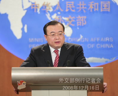 2008年12月16日下午,外交部發言人劉建超舉行例行記者會,就六方會談、中法關系、中國與印尼關系等答問。