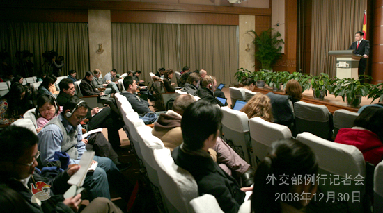 2008年12月30日,外交部發(fā)言人秦剛舉行例行記者會,主要就巴以沖突、印巴局勢等答記者問。