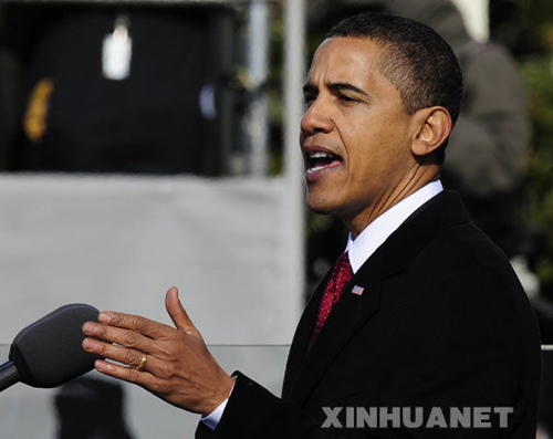 1月20日,美國總統奧巴馬在就職儀式上發表就職演說。當日,奧巴馬在美國國會大廈西側的露天平臺上正式宣誓就任美國第44任總統。 新華社記者張巖攝