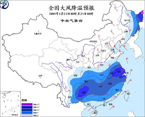 受強冷空氣東移南下影響,未來兩天,西北地區東部、內蒙古中東部、華北、東北地區、黃淮、江淮、江漢、江南北部等地將有5~7級偏北風,江南中南部、華南北部以及四川盆地北部等地將有4~6級偏北風,上述地區的江河湖面風力可達6~8級;東北地區東部和北部、黃淮、江淮、江漢、江南、華南以及西南地區東部等地的氣溫將下降6~10℃,部分地區降溫可達12℃以上。