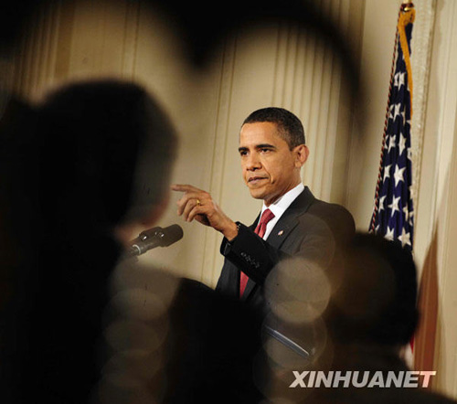 2月9日,美國總統奧巴馬在白宮舉行就職以來的首場新聞發布會。新華社記者張巖攝