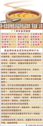 近年來,隨著一系列有害食品添加物曝光,人們無奈地發現,自己熟悉的化學名詞越來越多:三聚氰胺、蘇丹紅、吊白塊……面對泛濫的食品添加物,人們倍思回歸自然。能否讓百姓不再兼任“化學家”?新華社“新華視點”記者專訪了衛生部、蒙牛乳業、有關專家和參加兩會的代表委員。為配合全國打擊違法添加非食用物質和濫用食品添加劑專項整治工作的開展,專項整治領導小組2008年12月下發通知,公布第一批“食品中可能違法添加的非食用物質和易濫用的食品添加劑品種名單”,其中包括17種非食用物質和10種易濫用的食品添加劑(2008年12月15日資料圖表)。新華社發