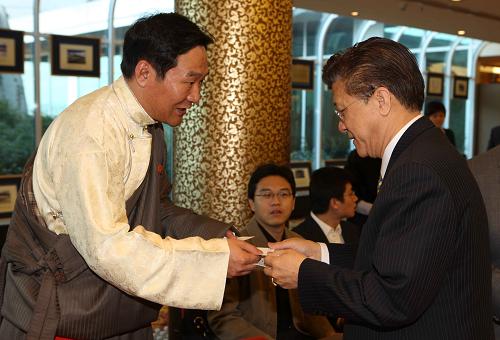 座談會(huì)上,代表團(tuán)團(tuán)長、全國人大代表、西藏自治區(qū)人大常委會(huì)副主任新雜·單增曲扎活佛首先代表西藏人民,向關(guān)心支持西藏建設(shè)的廣大同胞表示衷心感謝,并作為新舊西藏歷史的見證人,用大量翔實(shí)的數(shù)據(jù),向大家介紹了西藏的真實(shí)情況和50年來取得的巨大成就。