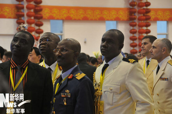 20日晚18點,慶祝中國人民解放軍海軍成立60周年多國海軍活動正式在青島開幕。外國海軍代表團團長出席開幕式。新華軍事記者 李宣良 攝