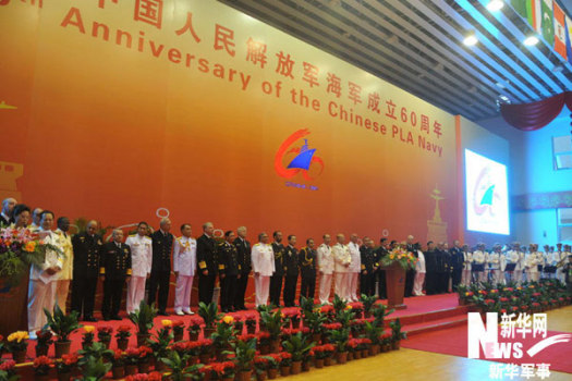 來自14個國家的21艘海軍艦艇20日齊聚中國青島軍港,中國人民解放軍海軍司令員吳勝利在青島大港碼頭宣布,慶祝中國人民解放軍海軍成立60周年多國海軍活動正式開幕。此次以“和諧海洋”為主題的多國海軍活動,旨在加強海上安全合作,共創和諧海洋環境。