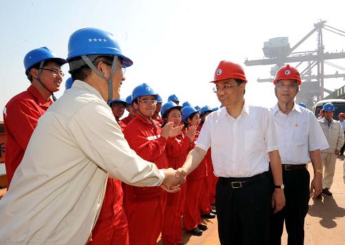新華社唐山6月2日電(記者 謝登科)中共中央政治局常委、國務(wù)院副總理李克強1日來到河北曹妃甸等地,深入工業(yè)區(qū)和企業(yè)、社區(qū)進行考察調(diào)研。他強調(diào),要按照黨中央、國務(wù)院的決策部署,在應(yīng)對危機中把握發(fā)展機遇,把擴內(nèi)需與穩(wěn)外需、保增長與調(diào)結(jié)構(gòu)有機結(jié)合起來,培育新興產(chǎn)業(yè),促進產(chǎn)業(yè)升級,在新的起點上推進環(huán)渤海地區(qū)開發(fā)開放,促進經(jīng)濟平穩(wěn)較快發(fā)展。