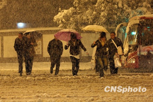 11月11日,一場由雨、雨夾雪、霰、冰粒和雪花形成的混合降水過程向古城西安呼嘯而來,全區范圍內普降中雪,局地出現了暴雪。據氣象記錄顯示,今冬初雪是西安1987年以來最早的一場降雪,從降雪強度、降雪量及日最低氣溫來看也都是同期最強的。氣象專家同時表示,在一次降水過程中,同時出現雨、雨夾雪、霰、雪花等多種降水方式的情況比較罕見,但也屬于正常。中新社發梁萌 攝