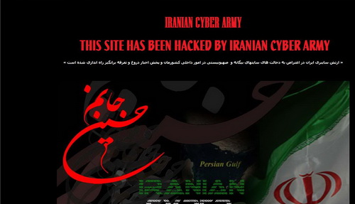 帶有伊朗國旗的頁面 上面標有“此站點已經被伊朗cyber army攻擊”