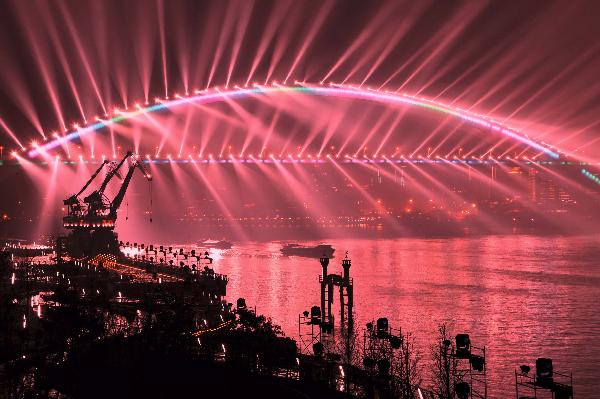 4月9日晚,上海盧浦大橋燈光璀璨。新華社發(鄭憲章 攝)
