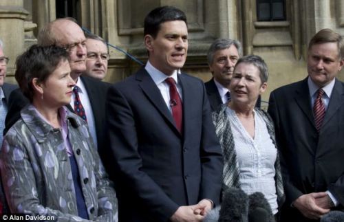 英國(guó)前外相大衛(wèi)·米利班德(中)