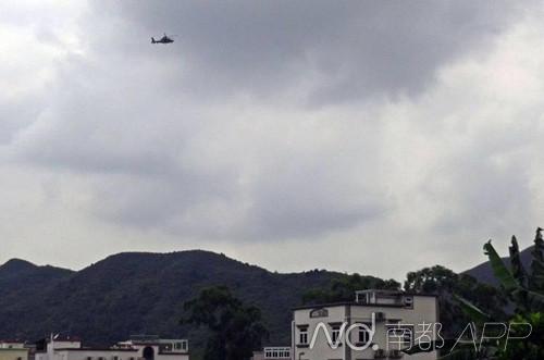 香港警方今早出動直升機,在沙頭角萊洞村一帶搜捕劫匪。 網絡圖片