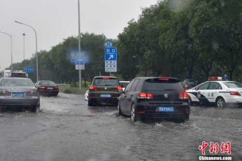 7月17日,北京的降雨,圖為豐益橋附近道路積水嚴重。中新網記者 金碩 攝