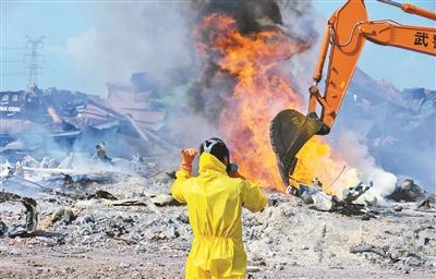 23日,爆炸現(xiàn)場仍可發(fā)現(xiàn)煙霧與火點 供圖/新華社