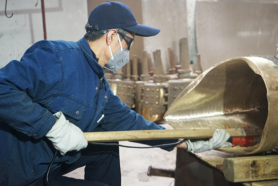 劉佑年在車間打磨編鐘。中國網信網 馬頔 攝