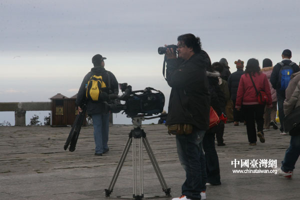 不顧一路旅途的疲憊,也不顧山上冰冷的雪霜,臺灣媒體團一路直上峨眉金頂。“天上金頂,天下峨眉”,金頂上云霧飄渺,有如人間仙境。媒體團的記者們一下車就投入到令人向往的云中仙境中,感嘆大自然的鬼斧神工和山水間的寫意勾勒。才剛見到峨眉山的一角,臺灣記者們就已經(jīng)迫不及待地擺開架勢,支起攝像機、照相機,想把看到的全部美景都捕捉下來。