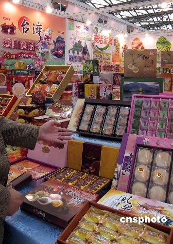 正在上海舉辦的中國大陸年度最大規模食品博覽會(FHC)上,臺灣食品行業的四十八家新老企業“組團”亮相,成為一道美麗風景。圖為由大陸臺商牽線,來自臺灣北中南各地的百余種美食結成“聯盟”,以“一站式”門店的模式,整體落戶上海。中新社發 許曉青 攝