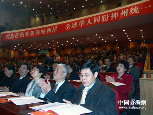 國務院僑務辦公室主任李海峰在開幕式上致辭。她說,無論是中華民族移民臺灣的歷史,還是現存民間的萬種家譜,都記載著臺灣同胞和祖國大陸特別是海峽西岸之間廣泛而密切的血緣親情關系。今天,雖然兩岸尚未統一,但大陸和臺灣同屬一個中國的事實從未改變。這是任何人也無法否認的歷史事實。令人痛心的是,在兩岸同胞一心求和平、求穩定、求發展,希望共同建設美好家園的今天,竟有那么一些人,為一黨一己之私,刻意歪曲臺灣同胞愛國愛鄉的情懷和當家作主的意愿,變本加厲地從事“去中國化”、“文化臺獨”、“法理臺獨”等分裂活動,企圖以此挑起兩岸沖突,欺騙民眾,騙取選票,實現“臺獨”分裂圖謀。這一嚴重危害兩岸關系和平發展的行徑,理所當然引起了兩岸同胞和廣大海外僑胞的強烈反對。我們高興地看到,廣大海外僑胞、港澳同胞長期以來一直高度關注臺海局勢的發展和兩岸關系的前景,充分發揮獨特優勢和影響,積極開展各種形式的“反獨促統”活動,表達他們期盼中國早日實現完全統一的真誠愿望和強烈訴求。