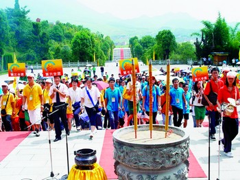 昨日,第三屆“兩岸青年聯歡節—湘粵之旅”祭祀炎帝陵典禮活動在炎帝安寢之地——炎陵縣炎帝陵舉行,400名在廣東讀書的臺灣青年與廣東200多名青年參加了本次祭祀典禮。