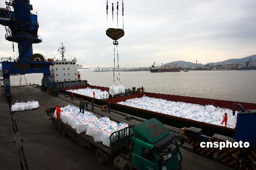 2月1日,位于福州長樂市閩江口洋嶼作業(yè)區(qū)的福建鑫通碼頭迎來第一艘來自臺灣的件雜貨輪寶宏3號。這艘從臺灣麥寮直航到鑫通碼頭的雜貨輪是與臺灣三通以來,抵達(dá)閩江口的最大一艘臺灣件雜貨輪船,這次從臺灣運來了5000噸化工產(chǎn)品。 福建鑫通碼頭2008年12月30日通過省市“一關(guān)三檢”部門驗收,成為福州市新增的外貿(mào)作業(yè)點。目前該碼頭有6個2萬噸級兼靠3萬噸海輪多用途泊位,年貨物吞吐量達(dá)百萬噸,面向港澳臺及世界各國的輪船停泊,總投資5.2億元人民幣,是目前閩江口南岸最大的綜合性碼頭。中新社發(fā) 祝敏松 攝