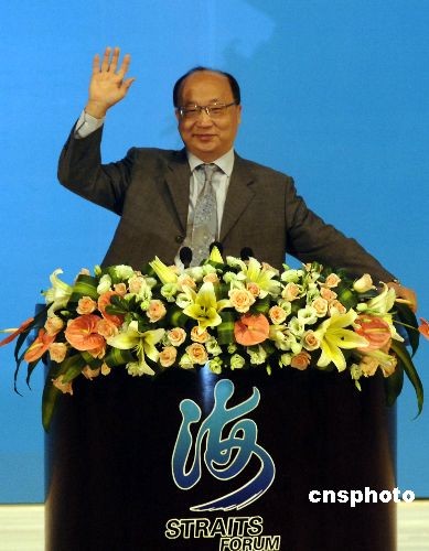 5月17日上午,臺中市長胡志強在廈門出席海峽論壇大會并致辭。當日,由國務院臺辦等25個國家部委、群團組織、民主黨派和福建省人民政府、臺灣28個民間社團機構聯(lián)合主辦的海峽論壇大會在廈門隆重舉行,來自海峽兩岸的近2000名嘉賓參加了大會。 中新社發(fā) 王東明 攝