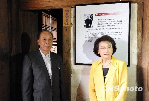 11月8日,前來(lái)中國(guó)國(guó)民黨直屬臺(tái)灣黨部舊址——福建永安復(fù)興堡參觀的臺(tái)灣實(shí)踐大學(xué)董事長(zhǎng)、原臺(tái)灣副領(lǐng)導(dǎo)人謝東閔之子謝孟雄(左)與夫人中國(guó)國(guó)民黨原副主席、中國(guó)國(guó)民黨中央評(píng)議委員會(huì)主席團(tuán)主席林澄枝(右)在該舊址內(nèi)其父謝東閔居住過(guò)的房間前合影留念。位于福建永安燕西街道文龍村內(nèi)的復(fù)興堡,始建于清代,與福建戰(zhàn)時(shí)省會(huì)永安一起見(jiàn)證了抗戰(zhàn)風(fēng)云。為了便于進(jìn)一步開(kāi)展工作,1943... 中新社發(fā) 劉可耕 攝