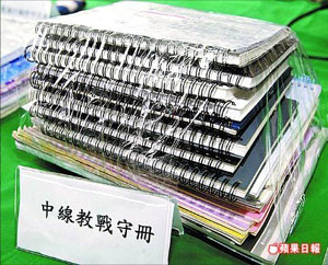 詐騙集團主謀要新成員抄錄“教戰守冊”做筆記。來源:臺灣《蘋果日報》