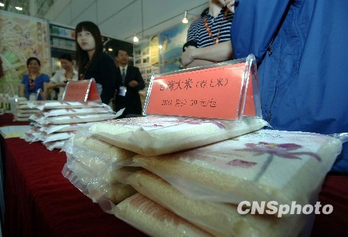 5月18日,在第12屆“海交會”的展館內(nèi),由國臺辦和國家質(zhì)檢總局特批允許從福州口岸引進的臺灣大米在福州海峽會展中心臺灣館正式展銷。據(jù)悉,這是大陸首次正式從臺灣引進大米,是繼海交會水果零關(guān)稅登陸后的又一次突破。 中新社發(fā) 王東明 攝