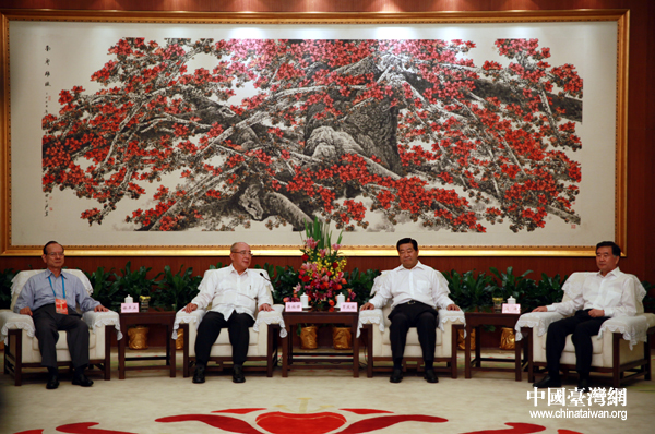 中國(guó)臺(tái)灣網(wǎng)7月9日廣州消息 中共中央政治局常委、全國(guó)政協(xié)主席賈慶林7月9日在廣州會(huì)見(jiàn)中國(guó)國(guó)民黨榮譽(yù)主席吳伯雄及應(yīng)邀參加第六屆兩岸經(jīng)貿(mào)文化論壇的兩岸各界人士。(記者 鐘寶華)