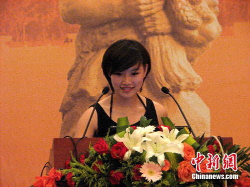 第二屆海峽兩岸炎帝神農(nóng)文化論壇今天在湖北隨州市舉行,年僅二十二歲、來(lái)自臺(tái)灣的美女學(xué)者宋佳穎現(xiàn)身論壇,發(fā)表《臺(tái)灣民俗藝陣創(chuàng)新發(fā)展之研究》演講,成為全場(chǎng)的亮點(diǎn)。