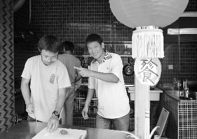 馬克的廚房就設在院子邊,是敞開式的,所以當我們饑腸轆轆地從曾厝垵的海邊過來時,以為那是一家對外營業的餐吧。穿著白色短袖T恤正熟練地顛著炒鍋的馬克直搖頭,說他們做的是自家飯菜。以我在臺灣駐點采訪的經驗,一下就從口音中聽出馬克是臺灣人,而馬克得知我曾在臺灣呆過,就熱情地邀我們一起進餐。于是,在臺式鹵肉飯、日式味曾湯、印尼式咖喱土豆和黑胡椒奶油白菜的香味中,我知道了臺北人馬克與廈門的故事。