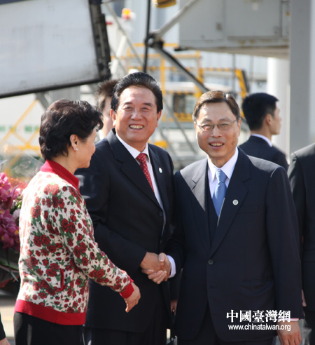 20日中午,由海協(xié)會會長陳云林率領(lǐng)的海協(xié)會協(xié)商代表團(tuán)乘坐國航CA185次航班順利抵達(dá)臺北桃園機(jī)場,參加將于21日上午舉行的兩會領(lǐng)導(dǎo)人第六次會談。 (中國臺灣網(wǎng) 鐘寶華 攝)