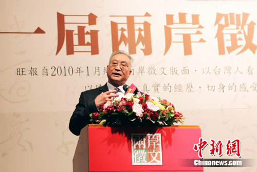 由兩岸三地媒體合辦的第一屆兩岸征文,21日在臺北舉辦頒獎典禮。