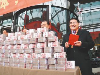 “大陸首善”陳光標(右)邀數十位企業家組成“光標愛心團”,昨天啟動春節行善捐款活動。圖片來源:臺灣《聯合報》