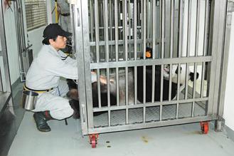 大貓熊團團、圓圓在2月7日至12日發情,雖然自然受孕功敗垂成,但母熊貓圓圓在9、10日共進行2次人工受精,醫療小組為了能夠掌握圓圓的受孕情形,發情期一結束,飼育員就對圓圓進行一連串的產檢訓練課程。