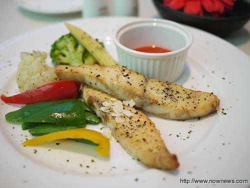 另外一道“香烤杏仁青衣佐魚柳”,采選大西洋深海魚,本身魚肉的油脂豐富,為了解除油膩感,店家先蒸后烤,用海鹽跟黑胡椒單純提味。貌似臺灣島形的魚柳,表皮微酥,但肉質(zhì)偏干,像歐美人士吃魚柳時(shí),喜歡享受魚肉豐潤甜嫩,但這里的魚柳比較適合喜歡健康的。