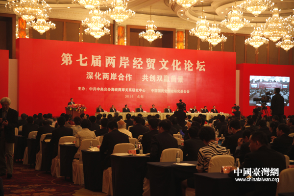 今天第七屆兩岸經貿文化論壇在成都隆重地舉行,我相信透過參與兩岸論壇的各位產、官、學的精英做腦力的激蕩,做意見的交流,這次的論壇,一定會像前六次一樣有一個豐碩的成果,作為兩岸決策時候的重要參考。兩岸經貿文化論壇一直在兩岸的交流與合作上扮演著相當重要的角色。我個人有一個體會,就是兩岸的和平發展有兩座橋梁,第一座橋梁是經濟的合作追求共同的利益,第二座橋梁是文化的交流。這兩座橋梁都非常的重要,經濟的合作就像手拉手、手攜手,我們要越來越緊密,而文化交流是心連心的工作,讓我們內心的距離能夠縮短,這兩者都是我們幾次論壇需要聚集的共識。所以我們從論壇開始以來,歷屆論壇分別達成多項結論與共識,包括推動兩岸直接通航、大陸居民赴臺旅游,促進兩岸的農業交流與合作,促成臺灣農產品銷往大陸,促進兩岸教育的交流與合作,加強兩岸金融及服務業的合作,促進兩岸雙向的投資,構建兩岸經濟交流合作的機制,促進兩岸在新能源節能環保等新興產業的規劃和產業政策的合作,這些都陸陸續續成為一個政策在落實當中。其中有許多政策都是由論壇的發言共識所醞釀發展出來的。尤其是兩岸經濟合作框架協議ECFA、兩岸直航、大陸觀光客來臺等,這些利民的政策使兩岸民眾獲得了極大的福祉,這些也鞭策著我們要把論壇越辦越好,并繼續為兩岸關系的和平發展做出更重大的貢獻。09:45:32