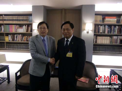 中華全國(guó)臺(tái)灣同胞聯(lián)誼會(huì)會(huì)長(zhǎng)梁國(guó)揚(yáng)(右)拜會(huì)臺(tái)灣中華文化總會(huì)會(huì)長(zhǎng)劉兆玄(左) 。