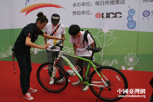 相較于節(jié)奏舒緩的太極研習(xí)營,自行車友誼賽則可謂精彩紛呈、高潮迭起。專業(yè)教練拆拼單車的表演引得叫好不斷,自行車拼裝比賽、動(dòng)感單車體驗(yàn)賽更是氣氛火爆,每位選手完成比賽,臺(tái)下觀眾都給予熱烈掌聲。而由兩地青少年組成的專業(yè)騎行隊(duì),更是神氣英發(fā)、引人注目。開幕的號(hào)令一下,他們隨即啟程,用環(huán)繞奧林匹克森林公園一周的實(shí)際行動(dòng)倡導(dǎo)“低碳環(huán)保、綠色出行”的理念。