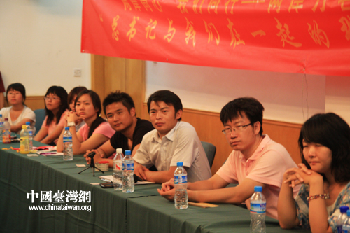 中國臺(tái)灣網(wǎng)7月13日北京消息 今天下午,作為兩岸萬名青年大型交流活動(dòng)之一的兩岸青年學(xué)生“追尋歷史的足跡”參訪團(tuán)在北京大學(xué)進(jìn)行參觀交流活動(dòng),并舉行“總書記與我們在一起的那一刻”主題座談會(huì),展開熱烈討論。胡錦濤總書記的和藹可親、平易近人,給兩岸青年學(xué)子們留下了深刻印象。