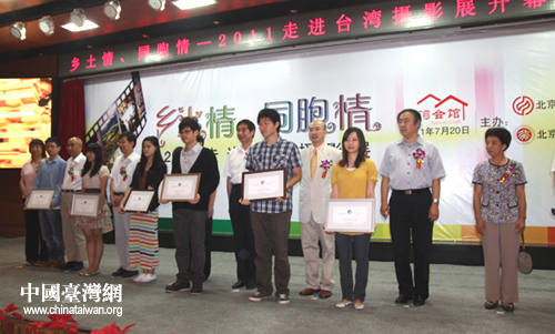 2011年7月20日,“鄉土情 同胞情—2011走進臺灣攝影展” 揭幕剪彩儀式上,獲獎的六位臺灣同學取得了證書。(中國臺灣網 楊永青 攝)