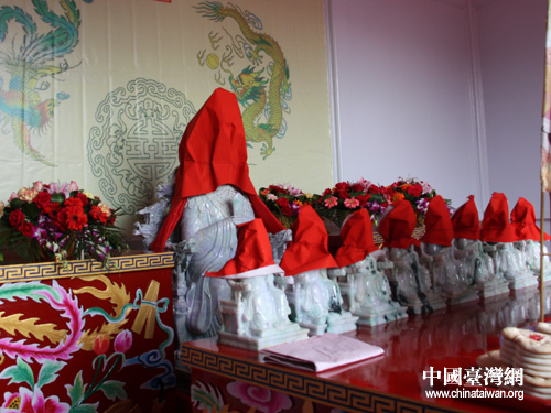 10日下午,湄洲媽祖祖廟受贈翡翠媽祖像儀式,在莆田市湄洲島天后廣場舉行,圖為開光典禮前的翡翠媽祖像。(中國臺灣網 楊麗 攝)