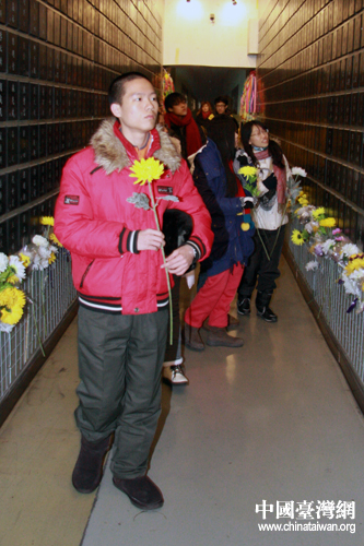 臺灣青年學生向被731部隊殘害致死的殉難者敬獻花束。(中國臺灣網 于斯文 攝)