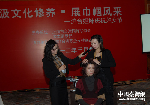 中共中央候補委員、上海市臺聯會長林明月,上海海外聯誼會副會長丁志堅,上海市婦聯副主席黎榮和太太俱樂部會長李月娥出席并致詞。上海文史館館員、知名臺胞油畫家廖炯模教授為姐妹們介紹了美學的基礎理論和審美的豐富內涵,來自臺灣的造型師吳慧芬講解了2012春夏造型潮流。