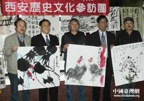 中國臺灣網(wǎng)3月21日西安消息 3月20日,陜西美協(xié)與臺灣中南部書畫家聯(lián)誼筆會在西安舉行。陜西省臺辦主任閆超英、副主任何銳出席了本次活動。