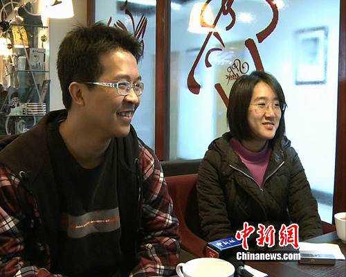 清華大學2010屆碩士研究生張致皓(左)和2010屆本科生俞柔安(右)。圖片來源:中國新聞網