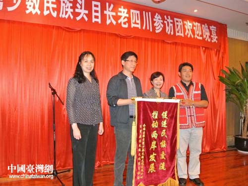 在歡迎晚宴上,全國臺聯(lián)臺灣少數(shù)民族文化交流中心和臺灣原住民族文化經(jīng)貿(mào)協(xié)會還向四川省臺聯(lián)贈送了“促進民族交流、推動兩岸發(fā)展”的錦旗,感謝四川有關方面在推動兩岸少數(shù)民族交流交往中所作的貢獻。